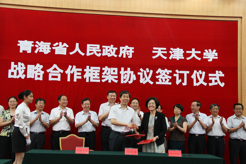 刘建平简要介绍了天津大学的历史沿革、人才培养、科学研究、社会服务等方面的基本情况,及近年来天津大学在学科建设、产学研合作等方面取得的成绩。他表示协议的签订在顶层设计上为双方开展更加深入合作搭建了桥梁,天津大学将进一步完善多渠道、多方位的长效合作机制,探索合作对接的新途径、新模式,深化双方各领域的交流合作。他希望双方不断增进彼此了解,通过合作实现共赢,为青海省经济社会发展作出贡献。程丽华对天津大学长期以来对青海省发展给予的关心和支持表示感谢。她说,自2012年天津大学与青海民族大学签订对口支援协议以来,天津大学在学科建设、学校管理等方面给予了青海民族大学大力的支持,极大地推动了青海民族大学的发展。此次省校合作协议的签订,将推动双方多层次、多领域的交流合作,对青海省人才培养、创新驱动和产业升级产生重要的影响,发挥积极的作用,实现优势互补、资源共享、共同发展、互利共赢。