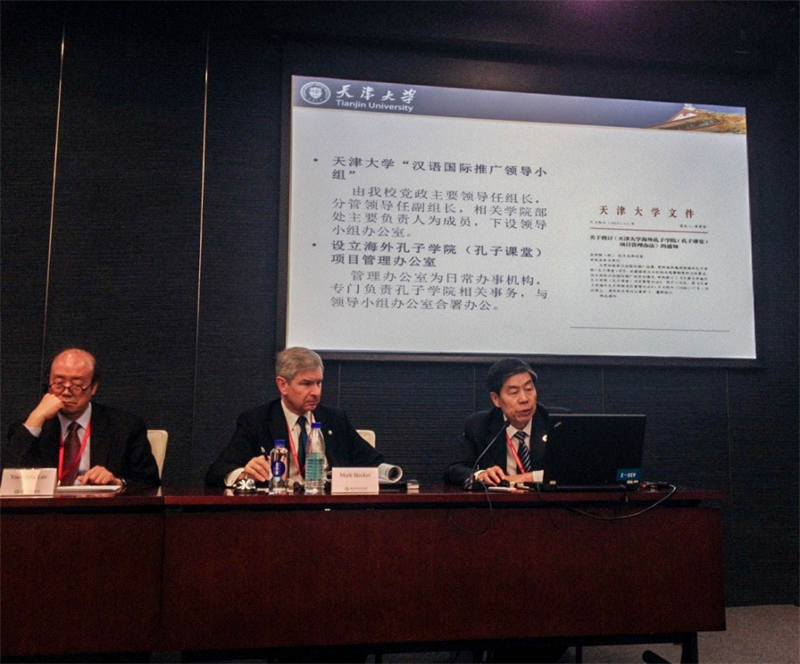 天津大学党委书记刘建平率团出席了大会开幕式,并在12月7日的校长论坛上做了题为“多渠道筹措办学资源,提高孔院经费使用效益”的主旨发言。发言中刘建平向出席论坛的中外来宾介绍了天津大学的历史沿革、发展现状以及目前我校承办孔子学院情况,着重介绍了我校作为中方合作院校在提高中方资金使用效益、多渠道筹措办学资源等方面的举措,并就加强孔子学院审计提出了合理化建议,赢得与会代表的一致肯定和掌声。