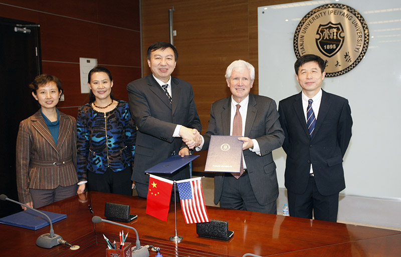 李家俊首先介绍了我校历史和120年校庆相关情况,并特别提及我校在化工协同创新中心以及产业合作等方面的进展情况,他希望科罗拉多州立大学能与天津大学延续悠久合作的传统,达成战略合作伙伴关系,在相关领域深入广泛合作。Cooney感谢了李家俊的热情款待。他指出,推动与中国高校的合作是科罗拉多州立大学的首要战略方针,而天津大学是科罗拉多州立大学在中国签署协议的第一所高校,加强与天津大学的各项合作将是科罗拉多州立大学在中国的重要任务。高炜随后介绍了科罗拉多州立大学的强势学科及各项排名,他希望通过学生交流进而推动两校在新利18网址登录