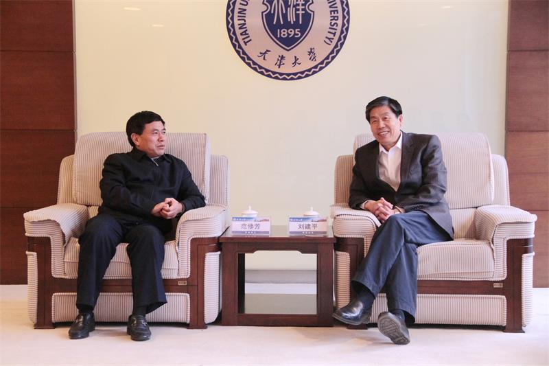 刘建平首先欢迎鹤壁市代表团莅临我校,介绍了学校整体发展及120年校庆举办、新校区建设和启用等方面的情况。得知来宾中范修芳、李松涛、朱明甫均为天大校友,简要介绍了学校校友工作。刘建平表示,天大校友总会是在国家民政部注册登记的社会团体组织,各地校友分会合法合规开展工作,坚持“服务校友、服务母校、服务地方”三个服务的宗旨,发挥着桥梁纽带作用,努力建设温馨和谐的精神家园。他希望鹤壁校友们发挥智慧力量,在鹤壁市经济社会发展中继续做出新的贡献,展现天大人的“家国情怀”。