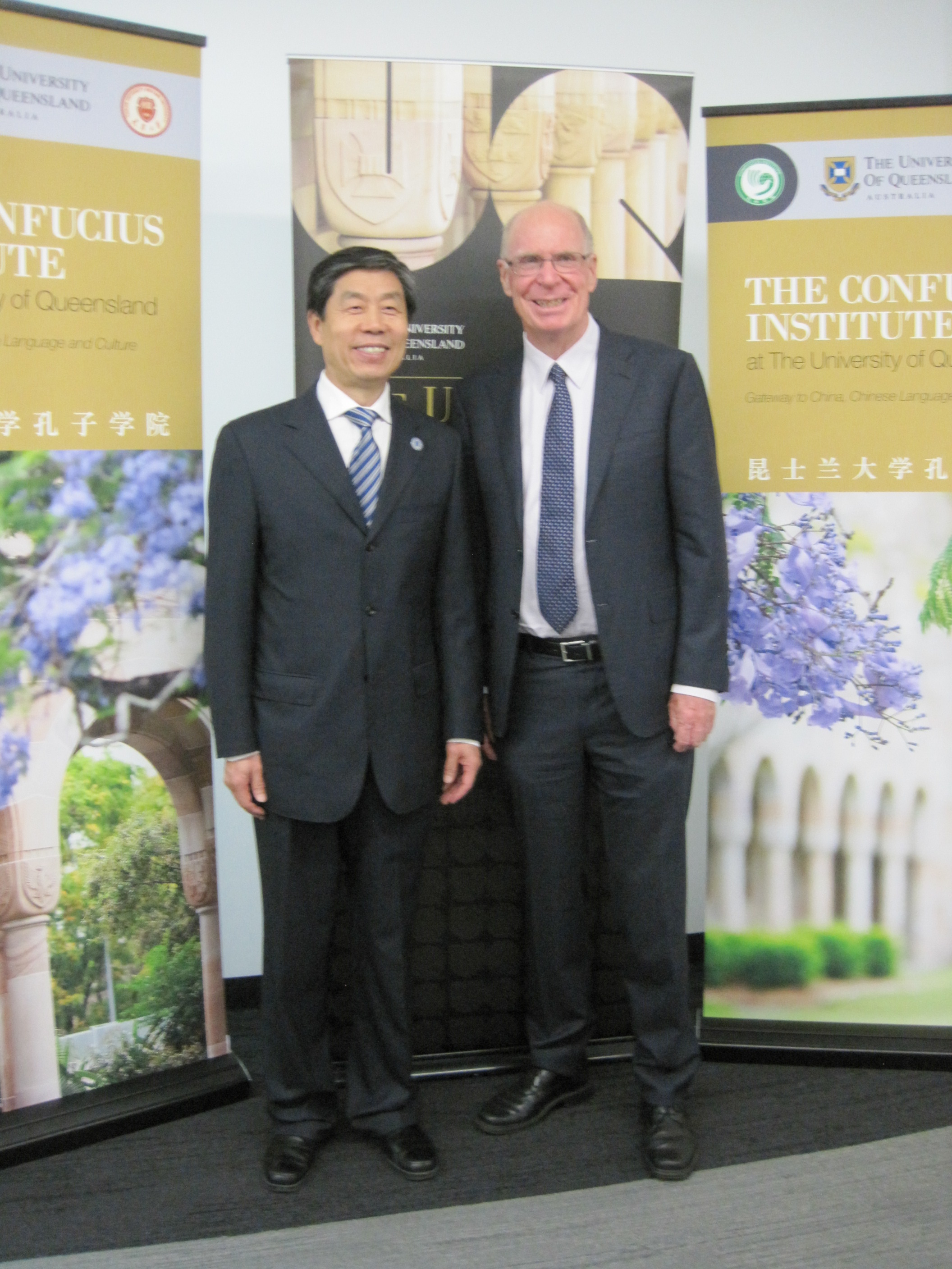 合作等诸多方面取得的成绩,感谢昆士兰大学及校领导给予孔子学院的高度支持和重视,并期待通过孔子学院这个平台,两校进一步深化战略合作伙伴关系,实现强强联手、互利共赢,在下一个五年的庆典时,双方共同庆祝更加丰硕的成果。