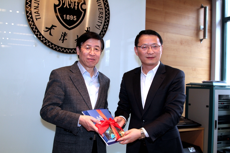 国网天津市电力公司总经理钱朝阳向天津大学校长李家俊赠书