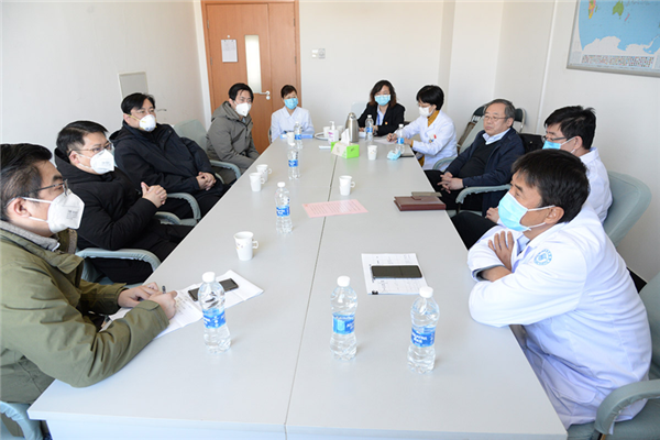 院常务副院长、医科建设办公室主任、医学部执行主任明东一行到访天津大学海河医院,天津大学海河医院党委书记张文龙、院长沈军,天津市新型冠状病毒感染肺炎的市级医疗救治专家组组长、天津大学医学部临床医学院院长、天津大学海河医院首席专家吴琦,以及相关临床救治专家参与座谈。