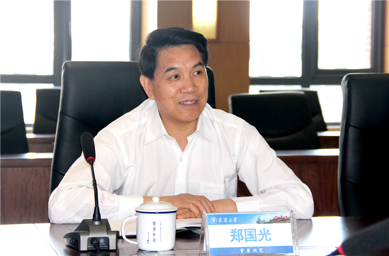 钟登华陪同郑国光参观了学校第38教学楼结构大厅。中国地震局办公室主任唐豹、人事教育司司长孙晓竟、震害防御司司长孙福梁,天津市地震局局长李振海,中国地震局第一监测中心主任宋彦云,天津大学副校长余建星、刘东志、元英进和学校相关部处、学院负责人参加了会谈。