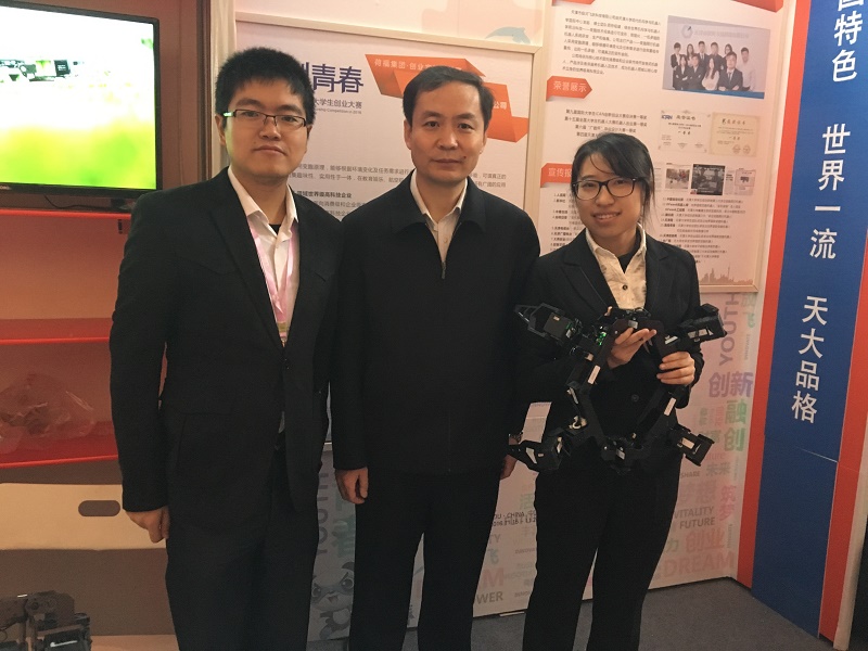18日上午,傅振邦来到创业项目开放日现场,“邂逅”了天津大学创客——MetaRobot变胞机器人团队(天津市银河飞跃科技有限公司)。公司创始人张春松和人力主管王派向傅振邦介绍了变胞机器人的设计原理和创新性,以及公司的运营理念和盈利模式,得到了傅振邦的肯定和鼓励。傅振邦叮嘱他们要结合专业特色,注重技术成果的转化,真正做到创新驱动创业。