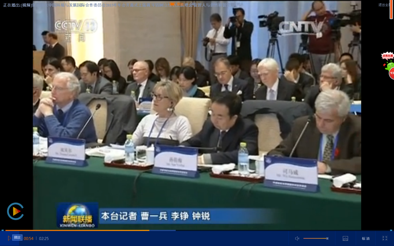 本站讯(通讯员 李朝千)2015年11月9日,中国环境与发展国际合作委员会2015年年会在中国北京钓鱼台国宾馆隆重开幕。国合会主席、国务院副总理张高丽,国合会中方执行副主席、环境保护部部长陈吉宁,国合会外方副主席、联合国副秘书长、联合国环境署执行主任施泰纳,国合会外方副主席,德国联邦环境、自然保护、建筑与核安全部部长亨德里克斯,国合会秘书长、环境保护部副部长李干杰等出席了本届年会。天津大学法学院院长孙佑海教授作为中国环境与发展国际合作委员会 “法治与生态文明建设” 课题组中方专家组长向大会作课题汇报。