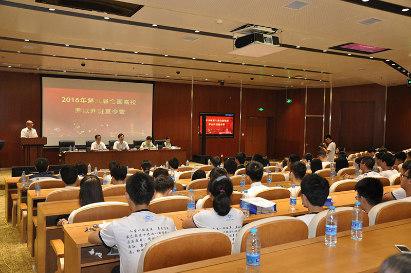本站讯(通讯员 陈维)2016年7月8日上午,第八届全国高校茅以升班夏令营开营典礼在天津大学北洋园校区行政楼报告厅顺利举行。茅以升科技教育基金会秘书长茅玉麟、天津大学副校长余建星、求是学部党委书记单小麟、求是学部副主任于泓、天津大学建工学院党委副书记李京霖出席开营典礼。此次开营典礼由单小麟主持。本次夏令营由茅以升科技教育基金会、天津大学主办,我校求是学部、建工学院承办,来自全国各地11所高校的60名茅以升班学生参加。