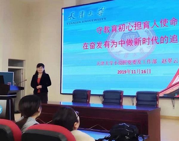11月16日上午,赵翠云在洛一高附小报告厅面向该校小学及幼儿园全体教师130余人做了题为“守教育初心担教育使命,在奋发有为中做新时代的追梦人”的主题报告,从“深刻理解好老师好干部的时代标准、自觉遵循好老师好干部的成长规律、在奋发有为中做新时代的追梦人”三个方面与大家进行了深入浅出的交流。报告中,她阐明了好教师好干部的时代标准和成长规律,并以天津大学小幼医党委及工作部十年实践积淀和她自己的工作与成长经历为例,分享了一系列先进理念、工作方法、成功案例及自己对人生的感悟和切身体会,倡议老师们感恩做人、敬业做事、快乐工作、健康生活,以积极、乐观、向上之态迎接工作及生活中的挑战,鼓励大家立德树人守初心,奋发有为担使命,努力做新时代的追梦人和圆梦人。在长达2个多小时的培训中,老师们备受鼓舞,掌声不断。会后大家积极踊跃撰写心得体会,分享自己的收获和感想,树立了“用心灵教书,用大爱育人”“修身正己,为学生的终身发展奠基”“以激情焕发灵感,以努力打造实力”等全新的工作坐标,由此开启自己教育生涯的新起点。