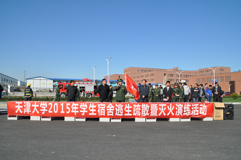 本站讯(通讯员 刘玉玮)10月30日中午12点30分,天津大学2015年学生宿舍逃生疏散和灭火演练活动在北洋园校区格园学生生活组图拉开序幕。海河教育园区管委会副主任陈建国、津南消防支队队长蒋炳强、天津大学党委副书记李义丹、校长助理张力新、保卫处处长张宝帆、学工部部长王寒、保卫处副处长王梦宾、学工部副部长柳丰林出席了此次活动。