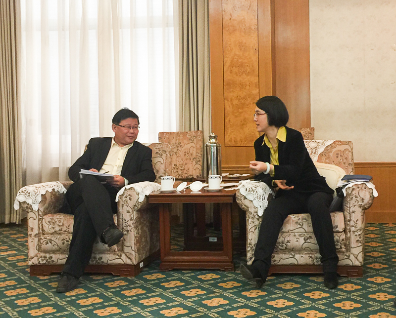 何洋对天津大学一行表示欢迎,在第二届亚太能源可持续发展高端论坛,国家能源局国际合作司负责人与天津大学党委书记李家俊进行了会面,国家能源局对APEC可持续能源中心的建设和发展工作非常看重,希望此次能够系统了解APSEC这两年的组建工作情况,共同讨论如何把工作做得更好。