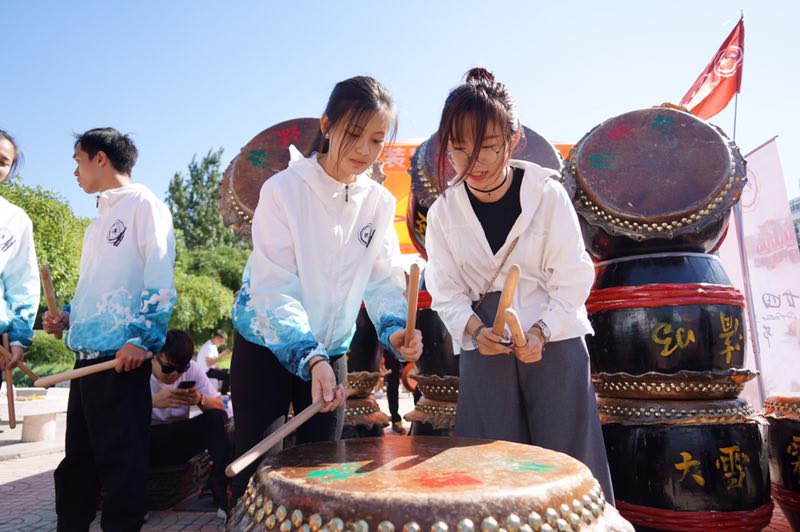 本站讯(记者 邱婧依 武文婧)9月22日是天津大学各学生社团面向大一新生纳新的日子,俗称“百团大战”,在纷繁热闹的各式社团展示中,来自天津大学国教学院的二十四节令鼓队的精彩表演引得学生们驻足围观,鼓掌叫好,阵阵激昂的鼓声配合着充满力量感的舞蹈勾画出南洋的独特风情,这支鼓队由天津大学马来西亚留学生创办,是目前第一个外国留学生社团,也是天津第一支节令鼓队。传统文化——节令鼓在天津有了一个新起点,文化传承的使命将在此延续下去。