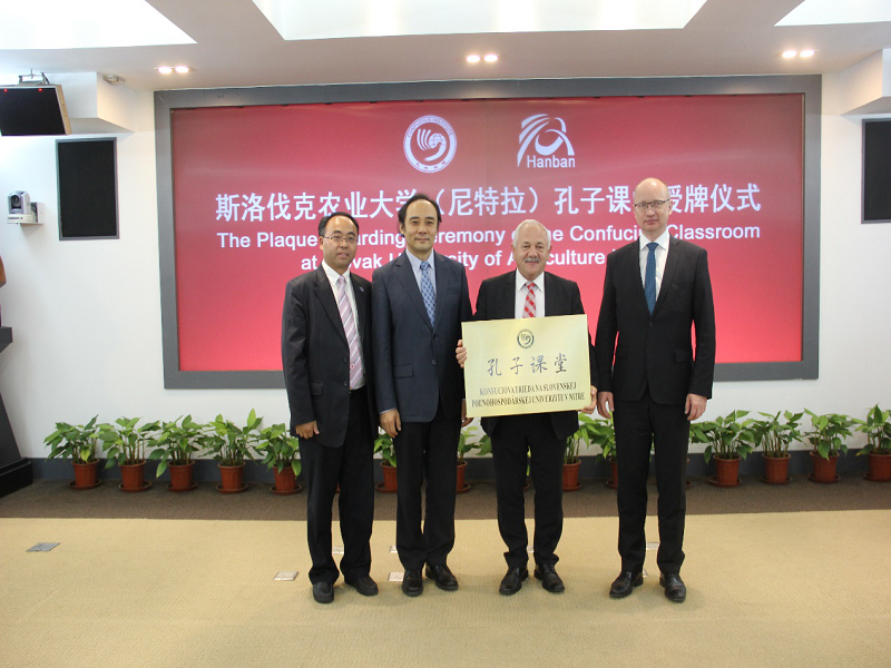 授牌仪式由孔子学院总部发展规划处处长曹叠峰主持。赵国成授予斯洛伐克农业大学孔子课堂牌匾。