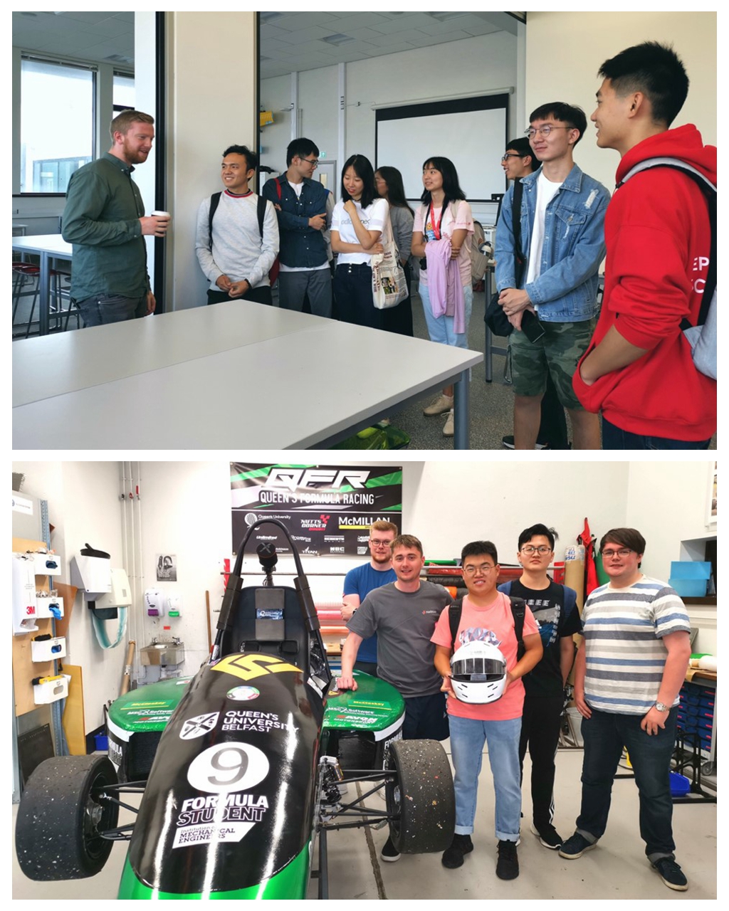 第二天,在经历了Tour to Facilities Healths & Safety Session后,同学们参观了贝尔法斯特女王大学机械与航天学院实验室。在3位博士生的带领和讲解下,同学们先后参观了先进加工、赛车装备、水切割、激光雕刻和3D打印等实验室。参观过程中,学生们积极与博士生互动,深入了解了女王大学工程学科的实验和课程体系。