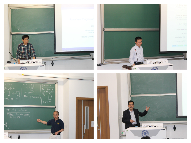 本站讯(通讯员 商闯)4月22日,理学院数学系邀请香港科技大学数学系主任汪杨教授,香港城市大学数学系原主任周定轩教授,浙江大学数学学院副院长李松教授,中山大学数学学院原副院长戴道清教授围绕数学计算与大数据分别作了“Sublinear Algorithm for Recovering Sparse Fourier Series”、“Distributed Learning with Big Data”、“ Some New Progress in Compressed Sensing”以及人脸识别等方面的学术报告。