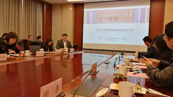 明东对竺剑一行的热情欢迎表示感谢,并向上海大学的同仁们介绍了天津大学医学部的发展历程、组织架构、学科布局等基本情况。他指出,天津大学紧抓国家重大发展机遇和健康中国战略的重大需求,坚持“医、教、研”协同创新、共同发展的理念,结合学校医学相关学科的已有优势,在医学教育教学、新利18网址登录