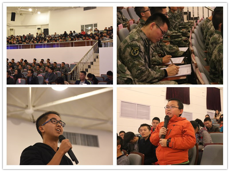 宋晓军从历史与经济的角度与师生一起分析了南海问题的由来,他从70年代石油危机的产生说起,以东南亚与中国经济贸易关系的变化历程为大家深度剖析了南海问题产生发展的整个过程,同时分析了中国在不同的历史时期所采取的不同的应对方式,他认为这不仅显示了我们维护南海权益的决心,更展现了大国智慧。面对同学们对于日本、美国干涉南海问题的困惑,宋晓军又从美日关系发展的角度,讲述了南海重要的军事和战略意义,让大家对南海问题的认知更加立体。随后,宋晓军结合国防建设讲述当代大学生应当担负起时代赋予的使命。他讲到:“习近平总书记曾多次强调,中国不走国强必霸道路。国虽大,好战必亡。面对各种挑战,我们应该有全球性的战略眼光,而不是抱着机会主义的心理应对。”他还讲到:“上一代的90后、00后,爬雪山过草地,为的是救亡。而这一代的90后、00后的任务是振兴,是走向世界,能够创造输出一种新的世界性的工业模式。中国近代输在技术、输在创新,现在只有通过科技创新,我们才能迎头赶上,实现赶超。”在现场提问环节,宋晓军结合问题讲到,积极做好国防建设,不仅是为保障国家安全,更可以促进我国相关科技产业发展与技术升级。值得一提的是,有一名小学生特意请假来到现场,并就自己关心的问题进行提问。