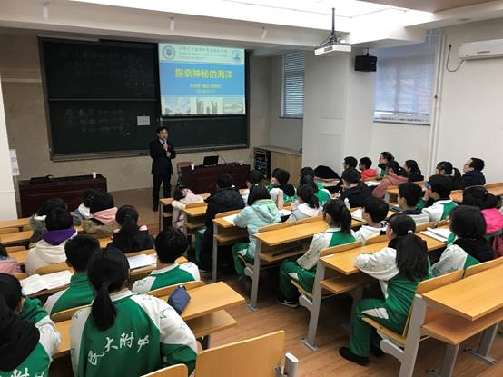 科普讲座主要面向高二学生群体。张安民老师带来了《探索神秘的海洋》的科普讲座,从认识海洋、经略海洋、探测海洋、智慧海洋四部分内容进行讲述。讲座前,张安民老师播放了天津大学海洋媒体实验室拍摄和精心制作的科普宣传系列片《海底世界》,视频中出现的千奇百怪的海洋生物以及五彩斑斓的海底世界迅速吸引了学生对海洋的兴趣。科普讲座让学生认识了海洋现象和海洋过程,理解了海洋与人类的密切关系;让学生明白了经略海洋对国家发展乃至世界大国地位更迭的重大意义;让学生了解了如何探测海洋,探测海洋需要的技术装备及探测海洋的重要意义;让学生了解了智慧海洋工程的最新进展和宏伟蓝图。精彩的报告激发了附中学子探索海洋奥秘的热情,同学们积极思考、踊跃提问,讲座结束后仍流连忘返、意犹未尽。