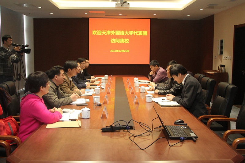 本站讯  (记者 摄影 王涛)12月25日上午,天津外国语大学副校长余江一行6人来天津大学考察访问。天津大学副校长刘东志在1895大楼A301会议室会见了余江一行并进行座谈,发展战略研究中心、信息与网络中心、学工部相关负责人陪同会见。