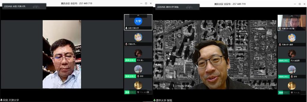之后,两校党委书记进行嘉宾致辞。天津大学建筑学院党委书记宋昆提出:“通过本次会议可以看到,天大和清华的建筑人都在用自己的专业知识对此次疫情进行深入思考。这样的共建形式也让我回忆起八十年代中叶我在天津大学读本科期间与清华大学的同年级同学结成了友好班集体。两校特色鲜明,希望通过共建活动的继续开展,实现取长补短。在未来的工作中,我们需要进一步提升专业能力,并扎实政治理论学习,创新活动载体,丰富学习形式,共同推进党支部组织建设。”清华大学建筑学院党委书记张悦提出:“天津大学和清华大学建筑学院之间的友谊非常深厚,疫情使我们之间的凝聚力更强。在这样的特殊时期,我们更要传好接力棒,将所学与实际结合起来,提升国家治理能力不是喊喊口号,要以解决实际问题为目标,要将论文写在祖国的大地上。”