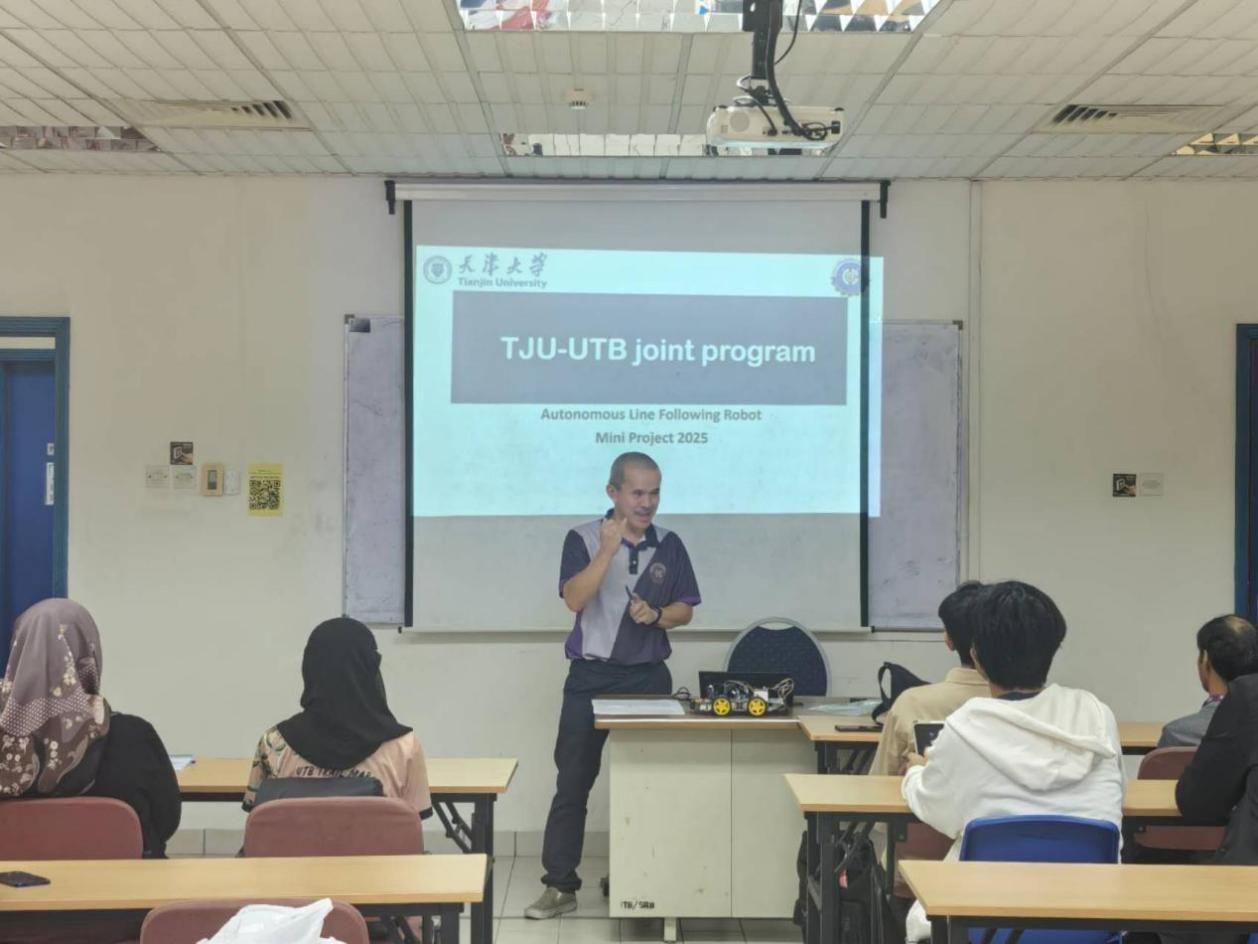 为落实新工科建设要求,深入实施天津大学“一流本科教育跃升行动”方案,聚焦拔尖创新人才培养核心目标,着力塑造学生“家国情怀、全球视野、创新精神和实践能力”的卓越品质,天津大学微电子学院于2025年7月25日至8月7日开展暑期海外创新实践项目计划(文莱站)。学院党委副书记韩旭、副教授李磊率12名本科生代表团,赴文莱理工大学(Universiti Teknologi Brunei, UTB)开展为期两周的学习交流。项目紧扣新工科交叉融合与国际化培养内涵,围绕创新实践、科技前沿体验与文化互鉴三大维度,精心设计了无人车循迹多学科项目实践、UTB实验室深度参访及文莱文化浸润体验等特色活动,旨在为学生搭建锤炼工程创新能力、拓展国际竞争视野的拔尖人才成长平台。