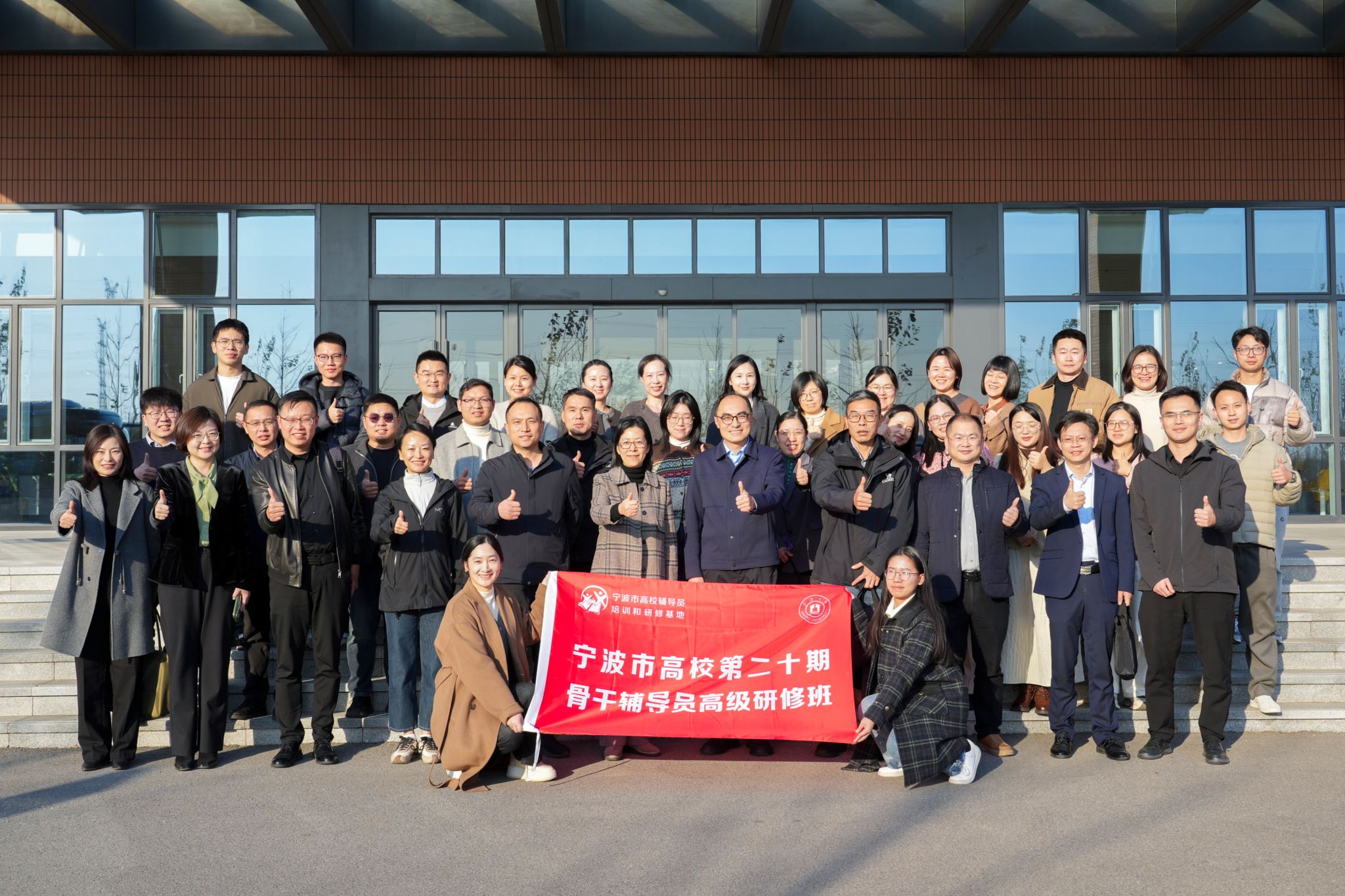 11月21日下午,宁波市高校辅导员培训和研修基地一行34人来访我校学工部,就高校辅导员队伍建设、学生思政教育品牌、一站式学生社区建设以及数智赋能学生思政工作的经验做法开展专题调研交流。学工部部长赵欣、副部长史慧、综合事务科科长邓有朋、本科生工作科科长马俊、学生生活园区管理服务中心副主任刘慧明参加座谈。