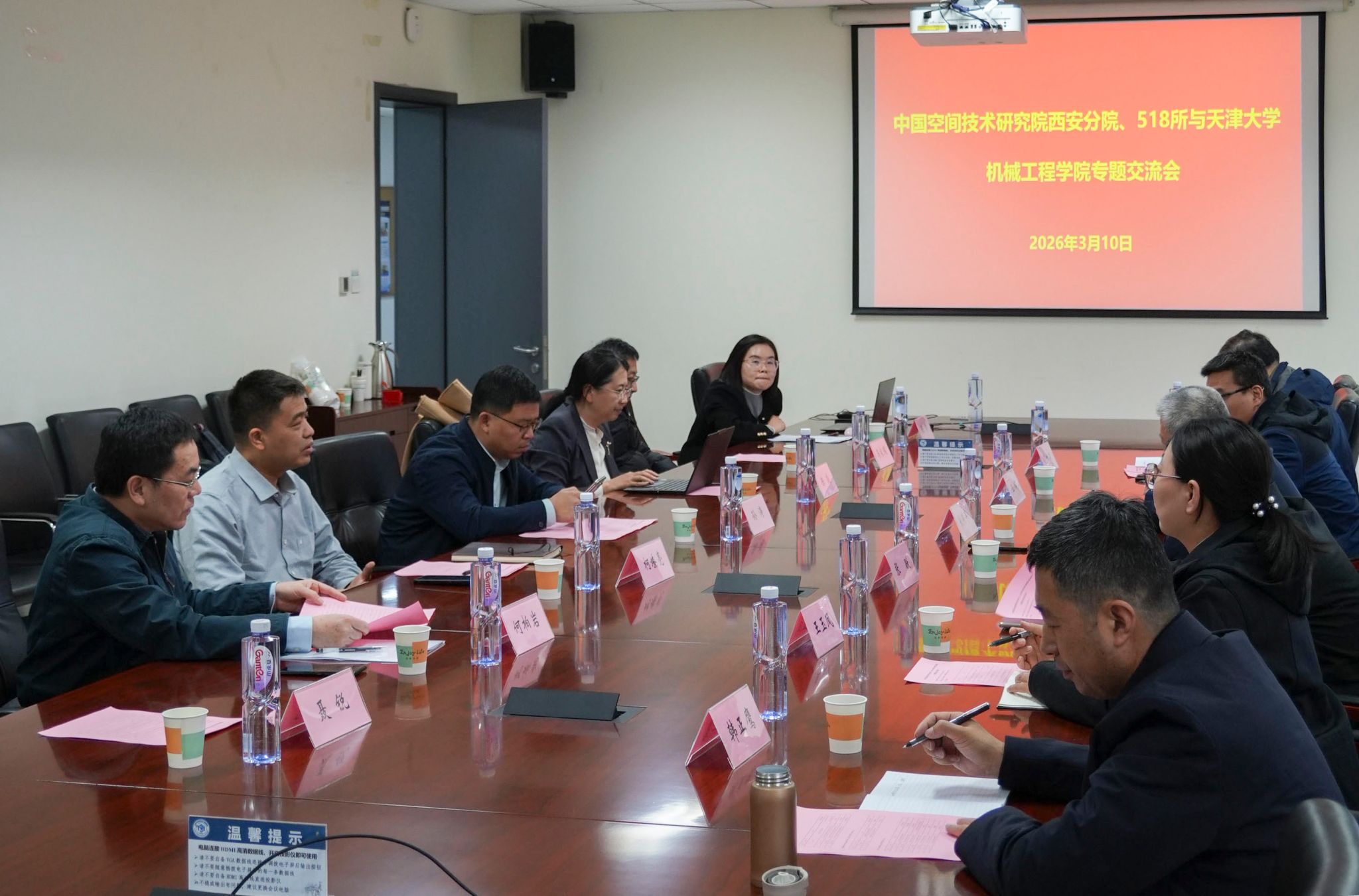 2026年3月10日,中国空间技术研究院西安分院科技委特邀委员、中国振动工程学会副理事长宋燕平研究员、518所(天津航天机电设备研究所)副所长张跃高工一行来访天津大学机械工程学院。三方就航天可展开结构领域深入合作开展了交流,并商谈了拟共同承办的“第七届可展开空间结构学术会议”相关筹备事宜。学院党委书记孙涛、院长柯燎亮、机构理论与装备设计教育部重点实验室主任陈焱、机械工程学科教授何柏岩及相关教师参加了交流会。