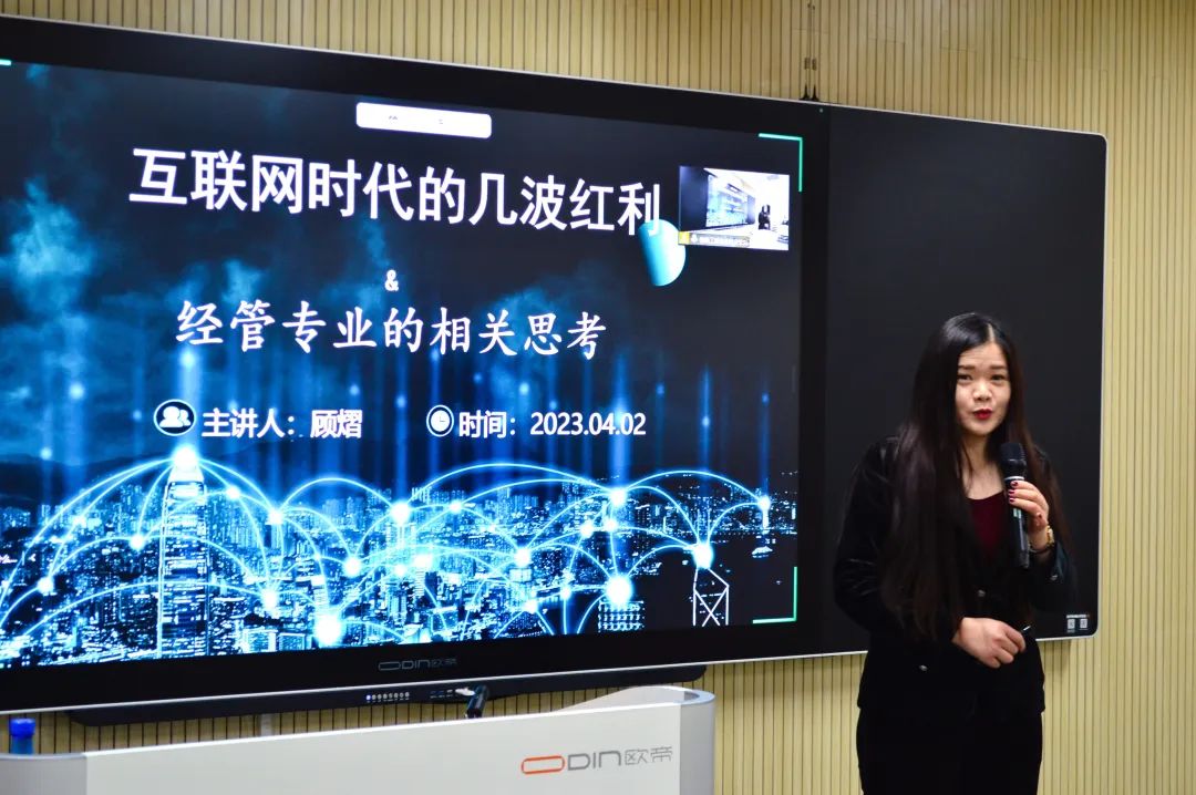 演讲主要从互联网发展的几个阶段、各阶段的代表及带来的红利浪潮来展开,并提出了自己对经管专业领域的相关思考及对学弟学妹们的展望与期许。