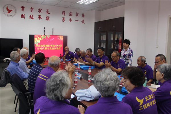 本站讯 2019年10月9日,天津大学精密仪器与光电子工程学院1964级计时仪器专业的20位校友从祖国各地赶来,相聚一堂,回望五十年风雨兼程。满载收获,相聚北洋,校友们与昔日教师、学院领导欢聚一堂,追忆往昔峥嵘岁月,展望母校未来辉煌。