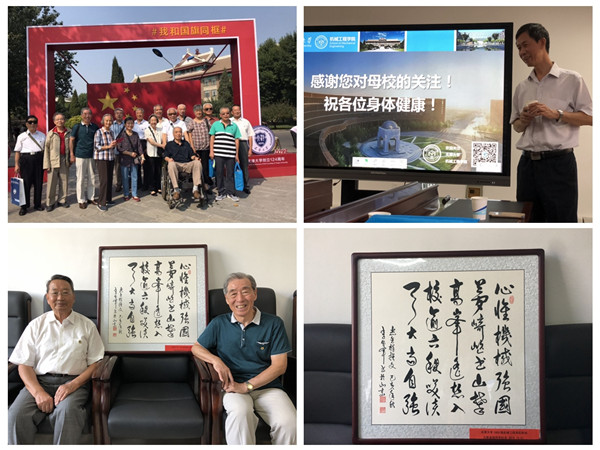 10月1日早上,1959级机制专业的老校友们聚集在卫津路校区第十教学楼前,留下六十年后的同学合影。校友总会谷钰处长、机械工程学院党委书记孙月海和副院长曹树谦与老校友合影留念。之后,大家移步二层会议室,曹树谦向校友们介绍了学院的发展和现状,校友们对学院取得的巨大成就感到无比自豪。老校友们向学院赠送了撰文“心怀机械强国梦,崎岖书山攀高峰,遥想入校逾六秩,笑谈天大当自强”的斗方,学院也向校友们赠送了印有学院标志的T恤衫和画册。老校友们畅谈着青葱岁月的同学情、师生情。