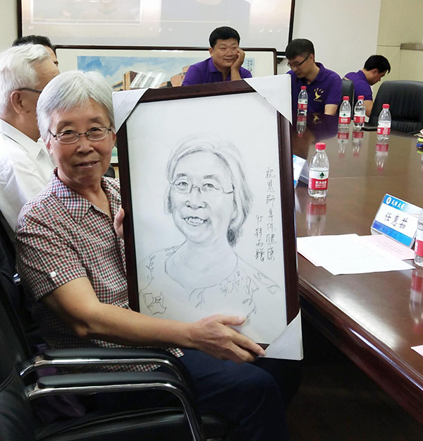 95级校友杨燕罡因感于求学于天大精仪学院,特地请画师以第17教学楼为主题作画一幅,值此相聚之际赠予天大精仪学院,微表感恩之情,同时赠予他的任课老师任蕙茹与范世福教授各一幅画,以记恩师情义。