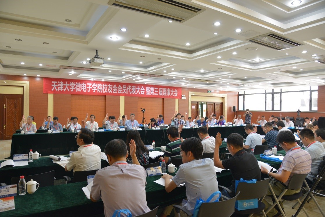 会议审议并通过了《天津大学微电子学院校友会更名议案》、《天津大学微电子学院校友会章程》、《天津大学微电子学院校友会第三届理事会建议名单》等相关会议文件,选举产生了微电子学院第三届理事会成员,选举杭建民为会长、马凯学等为副会长、选举李宗耀等为顾问、选举韩旭为秘书长、朱胜利等为副秘书长。