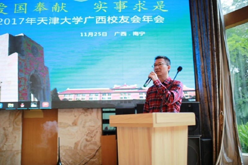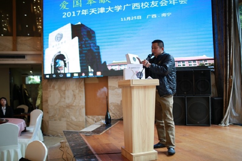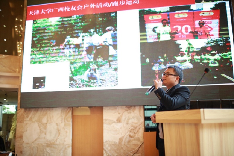 天津大学校友总会理事、广西校友会常委副会长黄凯枫在致辞中表示,广西校友会自1985年成立以来,以校友会作为校友交流平台,积极开展形式多样的校友联谊活动,服务好校友,增强校友的凝聚力:一是以会会友,凝聚情谊,坚持每年召开一次校友联谊会暨校庆庆祝大会,举办新入职校友迎新交流会,经常性举办品茶座谈会、新春户外踏青、马拉松跑步等活动。二是调动资源,服务母校,全力配合母校广西招生工作,利用各种机会宣传天津大学,扩大天津大学在广西的知名度及影响力,同时协助母校师生赴桂开展相关实践及调研工作。三是搭建平台,广交朋友,与兄弟院校校友会联合举办“重点高校广西校友足球联赛”,积极受邀参加其它院校校友会举办的各种活动。广西校友会始终秉承“服务校友、服务母校、服务社会”的宗旨,未来将继续服务母校发展建设,支持校友建功立业,服务广西经济社会发展。