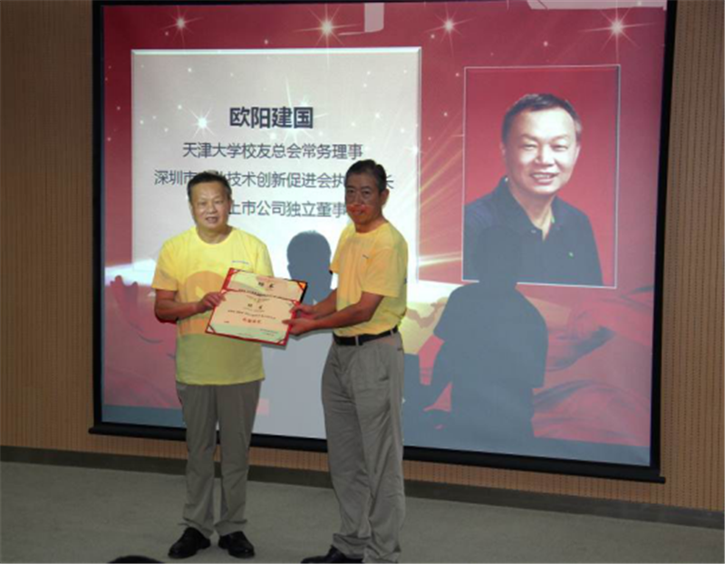 会上举行了聘书授予仪式,张华农代表校友会授予曹嘉庚校友及欧阳建国校友“深圳市天津大学校友会名誉会长及名誉秘书长”聘书,以表彰他们十几年如一日服务于校友,并为深圳校友会的成立及发展做出的巨大贡献。