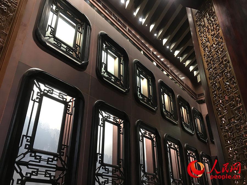“廿国共宇”顾名思义,“宇”为“栋宇”,为“宇宙”。G20的主体20国共处一个栋宇里,共在一片蓝天下,共在一个地球上。主会场位于建筑四层,总面积约2000平方米,为45米边长的方正空间,体现“天圆地方”的朴素哲学观。室内装饰的“四梁八柱”,四个巨大的“廿”字呼应“廿国共宇”的主题。此外,青花瓷图案的天花板,还有极具江南风格的雕窗、门扇,都凸显了中国传统的江南文化。