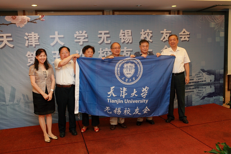 本站讯(通讯员 孙亮)7月5日,天津大学无锡校友会第五次校友大会暨理事增选大会隆重召开,校党委副书记、校友总会副会长汪曣应邀出席大会、看望校友,带去母校教育事业发展的最新资讯和学校领导师生们的亲切问候,代表校友总会向无锡校友会授予会旗。天津大学江苏招生组、校友与基金处、内燃机重点实验室等单位负责人陪同赴会。江苏、上海、苏州、常州等地校友会会长(秘书长)专程到会祝贺。无锡校友会老会长徐仁杰、彭淑明、张德恩等近百位校友共襄盛会,其中有1962年毕业的老学长,也有2015年毕业的新校友,大家共同回忆在母校天津大学的美好时光,共同祝愿母校双甲子再创辉煌!