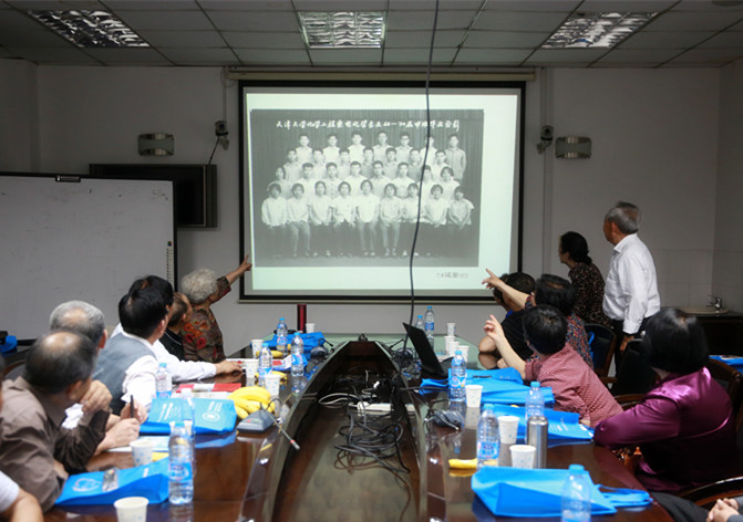 照片是似水流年的记忆定格,校友们望着大屏幕上年轻的自己,回忆在天大化工读书时的往事,闲话毕业四十五载后的家常。