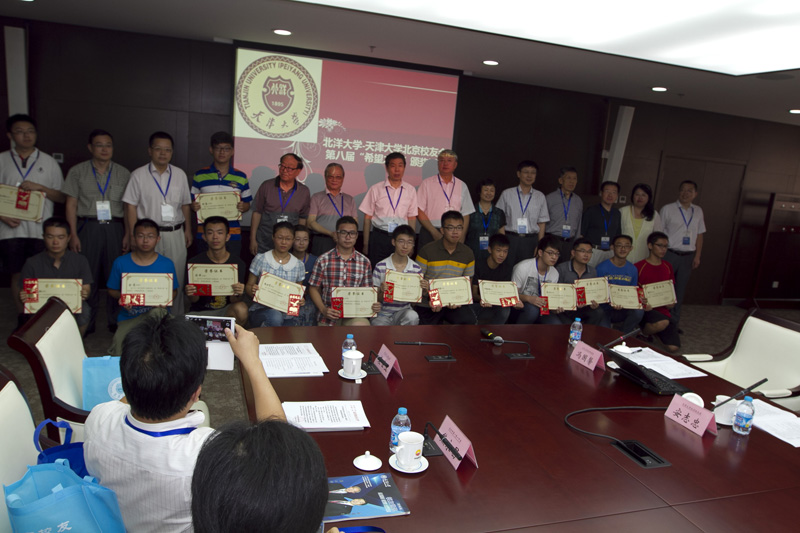 本站讯 (通讯员 王葳)8月23日,北洋大学—天津大学北京校友会第八届“希望之星”奖学金颁奖仪式暨座谈会在北京举行。天津大学党委书记、校友总会会长刘建平,副校长、校友总会副会长兼秘书长冯亚青应邀专程出席会议,北京校友会会长陈冀平、荣誉会长袁国林、常务副会长安志忠、刘彦华及在京知名校友王寿君、许高峰、刘树屯、张维刚、张勇、李兴刚、徐辉、张志高等出席会议,天津大学建筑学院、宣传部、校友总会、教务处招生办等单位同志陪同赴会,北京大学附属中学校长王铮等十余所北京市重点中学校领导和教师代表23人、获奖学生和学生家长参加座谈会。15名2014级北京籍天津大学新生在会上受到奖励。