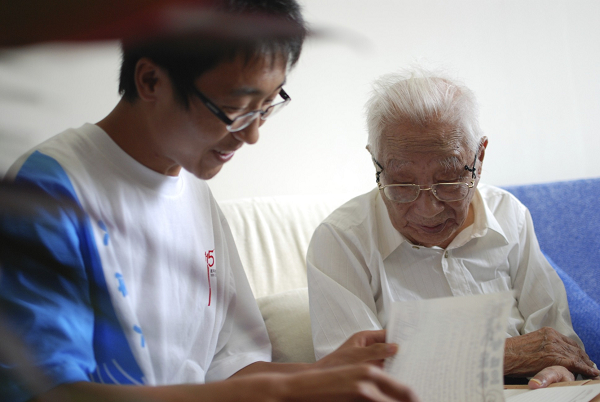 2010年,年龄最小的在校生毛亚宁送给老学长祝福册