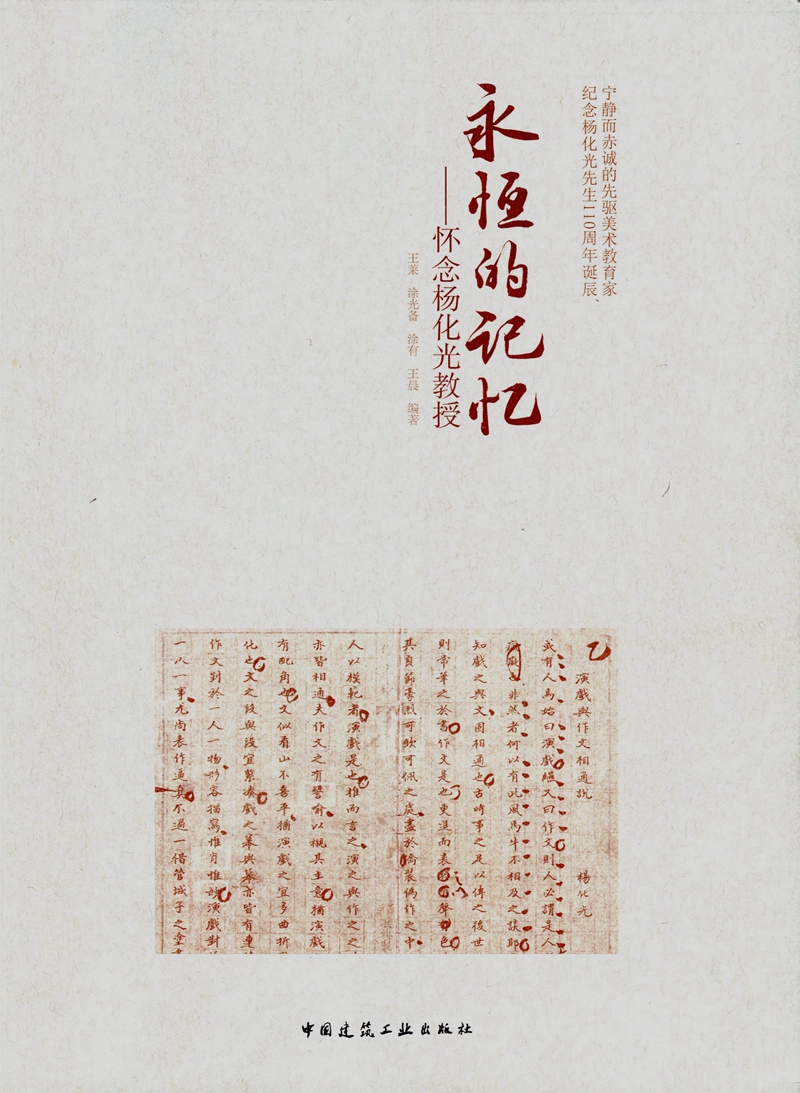 背景:《永恒的记忆》是为了纪念天津大学建筑学院教授、我国著名画家杨化光先生诞辰110周年,由其子女收集整理,在建筑学院和中国建筑工业出版社大力支持下出版的纪念文集。文集收录了杨化光先生前半生的口述记录,以及其家人回忆整理的“化光生平”。杨化光的生前的同事、朋友和学生及其家人为该书撰写了大量纪念文章,向世人展示了杨化光作为一名美术教育家伟大的人格魅力。该写还收集了杨化光先生的部分遗作。