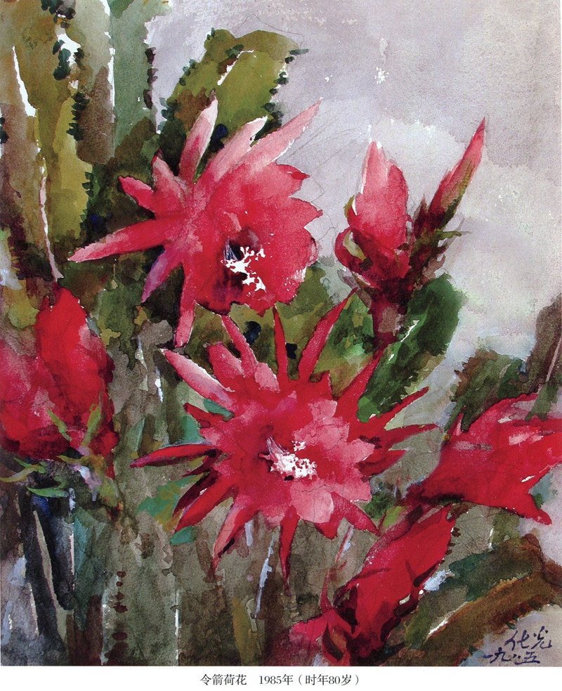 虽然受到迫害,无法从事美术教学工作,杨化光想的是“如果手生了,将来如何教学生?”在政治环境稍稍宽松的时间,她拿起外孙子的画笔,用小学生六色水彩颜料开始作画。