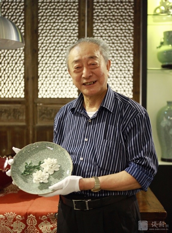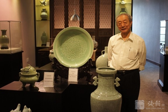 特别值得一提的是,工作室目前向公众展示的,除了叶老亲手烧制的哥窑、弟窑和官窑青瓷珍品,以及与叶国珍大师合作的变色釉作品,与龙泉夏侯文大师合作的青瓷堆花等新产品,还集中展示了几大名窑一系列大师的代表作品。其中,有河南钧窑任星航大师、河南汝窑朱文立大师、福建德化柯宏荣大师、江西景德镇彩瓷黄云鹏大师、江苏宜兴紫砂葛军大师、房暗星大师、长兴紫砂董建民大师等。在面积一百平米的工作室,名瓷荟萃。这也显示了叶老开放合作的豁达心态。叶老希望中国陶瓷的各门各派都能加强光流合作,共同创造中国陶瓷新的辉煌。
