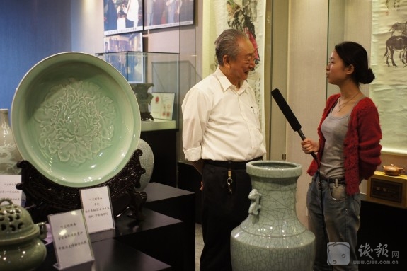 在杭州建国际瓷文化交流中心,是“复活国宝的名瓷大师”叶宏明多年的心愿。叶老说,浙江是瓷器的发源地,又在“官、哥、汝、定、钧”五大名窑中独占其二。让国宝重放异彩,推陈出新,在杭州建国际瓷文化交流中心,有着历史、文化等多方面得天独厚的有利条件。为此,他曾在全国政协会议上,在钱江晚报人文大讲堂上多次呼吁(相关报道见钱江晚报2010年9月7日B7版)。今天,叶老的梦想照进现实,在建设文化大省的鼓角声中,在浙江省和杭州相关领导和部门的大力支持下,“御富永藏——叶宏明古陶瓷工作室”正式落户西湖文化广场国家文化产业基地,向公众开放。一生心血付与瓷的叶老希望把自己的工作室办成国际瓷文化的交流中心,为陶瓷事业再尽一份心力!