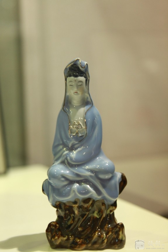 图为叶宏明与叶国珍两位大师合作的变色瓷观音