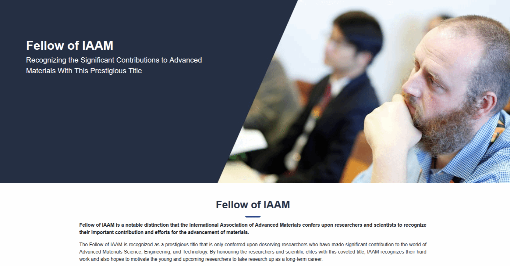 人员的殊荣,作为学会的最高荣誉,评选标准极为严苛,需经专家提名、学术委员会多轮评审、公开学术演讲等环节,仅授予在材料科学与工程领域取得独创且具有重要影响力成果的学者。IAAM 每年在材料科学、工程和技术领域的每个学科中选出最多3名杰出科学家。目前全球仅有 90 多个国家的 4200 余人获此殊荣。