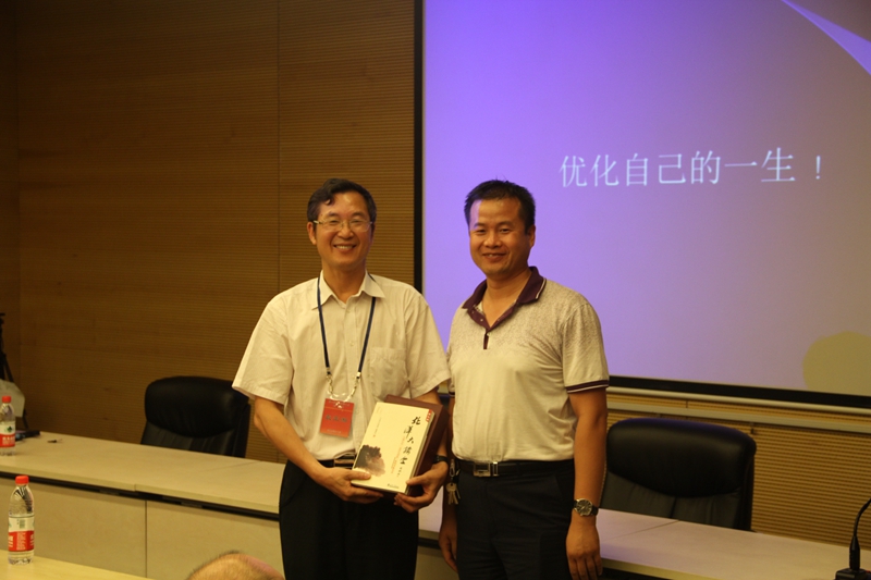 最后,理学院党委副书记席兆胜作为理学院代表为袁亚湘院士送上北洋大讲堂书籍及礼物。袁亚湘院士、陈永川院士与主办方人员一一亲切握手并合影留念。