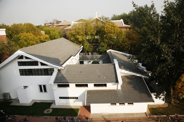 说到周围环境,求是亭北侧的一组建筑,从五、六、七、八、九教学楼到图书馆北馆,都是机制水泥瓦壁顶,过火砖墙身的“传统范儿”。不久前,第九教学楼刚刚入选“首批中国20世纪建筑遗产”名录,是天津市5项入选建筑和建筑群之一。小小的求是亭和雄浑、古朴的第九教学楼规格不同,风格相近。第九教学楼的设计者是彭一刚院士的导师,天津大学建筑学院的奠基人之一——徐中教授。该楼于1953年修建,历经唐山大地震而巍然屹立,散发着浓重中国建筑风格。彭院士多年来秉持的“中而不古、新而不洋”的设计风格颇有徐中先生遗风。
