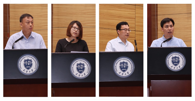 “三育人”青年先进工作者标兵化工学院范晓彬老师、“学生最喜爱的思想政治理论课教师”代表管理与经济学部尚洁老师、“师德建设先进集体标兵”和“教工思想政治工作优秀示范项目”代表药学院杜云飞老师、以及“我心目中的十佳好导师”环境学院赵鹏老师分别在会上发言。