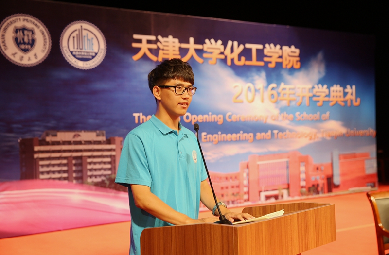 2016级本科应用化学专业王英朴作为新生代表发言。“太上有立德,其次有立功,其次有立言,虽久不废,此之谓不朽”,他以古词为例,向同学们分享了新时代下“立言”、“立功”、“立德”的内涵和意义。“感谢天大,给了我们实现理想的摇篮;感谢在天大能遇见你们,让我在努力奋斗的路途中有人作伴,让我们一起为远大的理想和中国梦努力奋斗吧,做天大的人,立天大的志!”