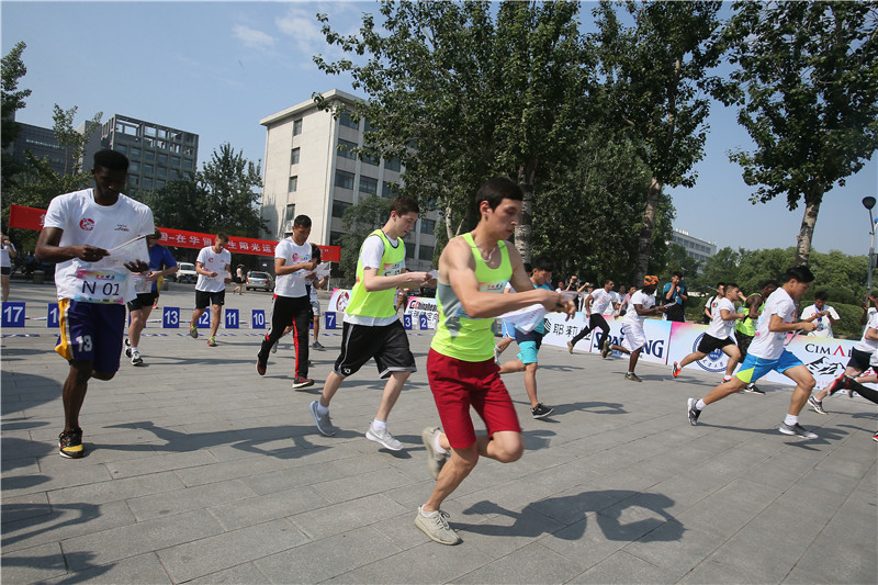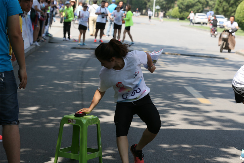 比赛现场设立7个接力区,每队选手需要在接力区完成正确摆放中国象棋、中国传统文化知识问答、踢毽子、跳绳等任务才能继续比赛。上午9点整,比赛鸣枪开跑,运动员们由北洋广场出发,沿太雷路、青年湖等天津大学标志性建筑开跑,赛道总里程8公里。