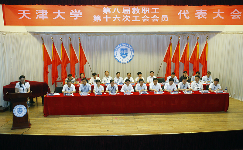 天津市总工会副主席、教育工会主席徐树青,天津市教育工会副主席刘伟,全体校领导出席了大会开幕式。出席会议的校内来宾还有学校老领导和两院院士、学校各民主党派主要负责人、无党派人士代表、离退休教职工代表、学生代表,历任工会主席、上届工会委员会及教代会执委会委员。非本次大会正式代表的全体中层干部列席大会。第八届教职工代表大会、第十六次工会会员代表大会应出席教代会代表359名,实到284名,应出席工代会代表363名,实到290名。清华大学、北京大学、浙江大学、上海交通大学、南开大学等全国各地包括天津市共52所兄弟高校工会及共青团天津大学委员会等向大会发来贺信,预祝大会圆满成功。